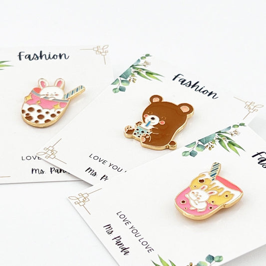 Bear & Bunny Boba Enamel Pins – Cute Animal Lover Accessories