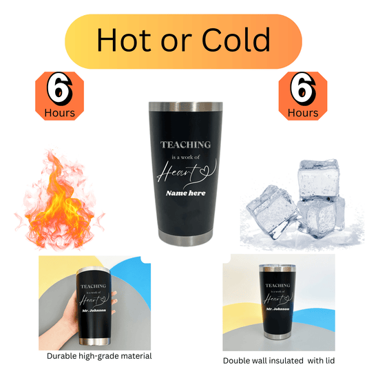 20 oz Teacher Tumbler – Teaching Is a Work of Heart Custom Gift